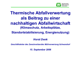 Thermische Abfallverwertung als Beitrag zu einer nachhaltigen Abfallwirtschaft (Klimaschutz, Arbeitsplätze, Standortstabilisierung, Energienutzung)