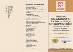 "Abfall- und Kreislaufwirtschaft als Eckpfeiler nachhaltiger bayerischer Umweltpolitik – Chance für die Industrie und Förderung der Region im europäischen Wettbewerb"