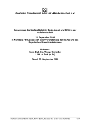 Ehrenvorsitzender der Deutschen Gesellschaft für Abfallwirtschaft, DGAW e.V., Berlin