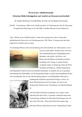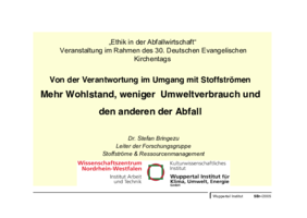 14.35 Uhr Abfallvermeidung und Abfallverwertung als ethische Aufgabe
