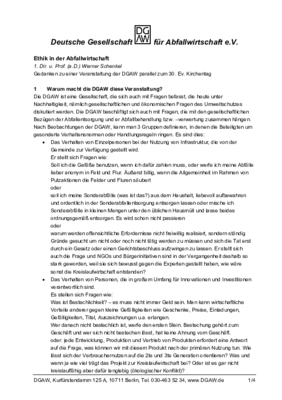 DGAW e.V. - Ethik in der Abfallwirtschaft "Ethik in der Abfallwirtschaft"