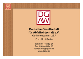 DGAW - Deutsche Gesellschaft für Abfallwirtschaft e.V. - 10 Jahre Landesverband der Recyclingwirtschaft Sachsen e.V. Sächsisch-Ungarische Fachkonferenz "Abfallrecycling-Technologien" Internationale Umweltmesse ÖKOTECH