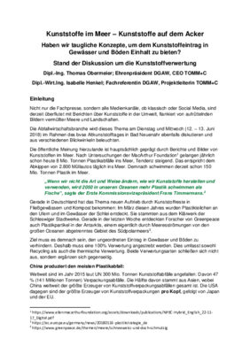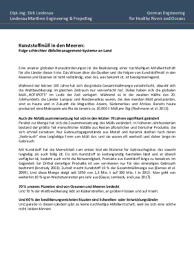 Kunststoffe in der Umwelt, insbesondere in den Gewässern ist bei Makroplastik primär ein „littering“ Problem, wohingegen bei Mikroplastik der Eintrag durch Reifenabrieb überwiegt. Asien und zunehmend Afrika sind die hauptsächlichen Emittenten. Aber auch Europa und Deutschland tragen durchaus auch zur Vermüllung bei. Wir haben die Aufgabe, mit nachhaltiger Abfallwirtschaft die positiven Beispiele für die Metropolen der Welt vor allem in Asien weiter auszubauen...
