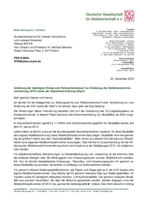 DGAW Stellungnahme zum Referentenentwurf zur Änderung der Abfallverzeichnis-verordnung (AVV) sowie der Deponieverordnung (DepV)